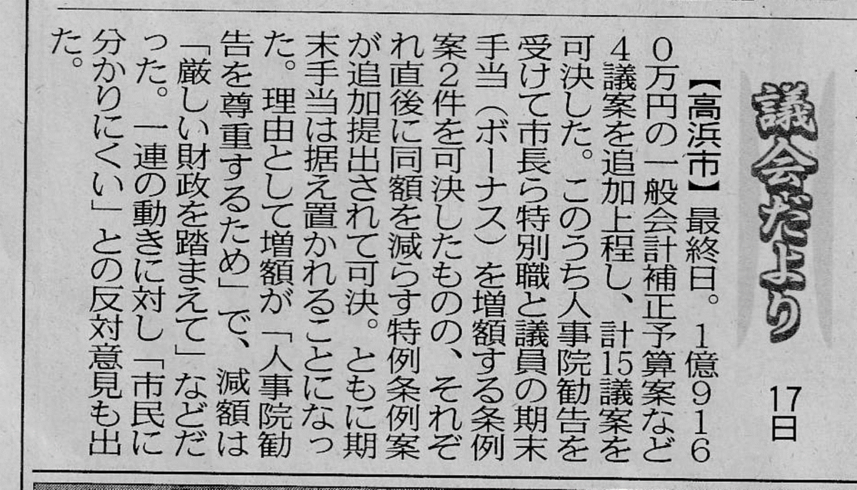 ■ 今回は "25.12-中日新聞-「議会だより」にて 疑問は「市長-給与」の適正適切さ…