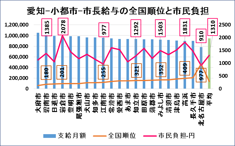 ●「高浜市長-給与-901千円-全国-409位」対「人口-49千人-全国-523位」は過剰給与…