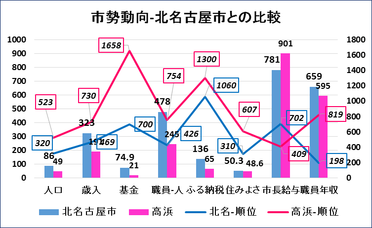 ●「高浜」は「首長-給与」のみ過剰高額とし「職員」「住みよさ」「公共施設」は放棄!